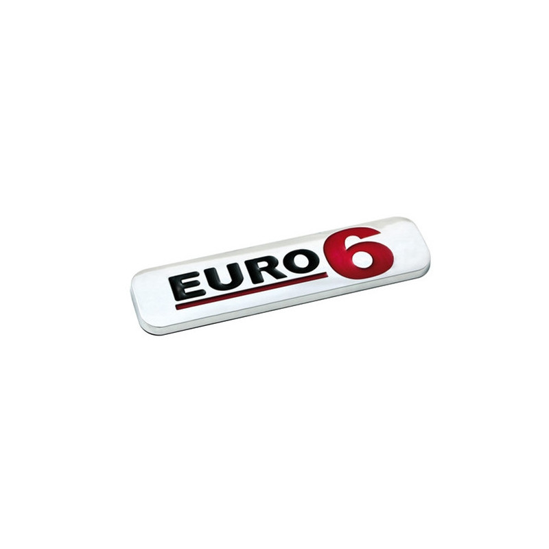 3D nálepka 'EURO6' Charakteristika produktu: ► Kovový samolepící emblém s povrchovou úpravou CHROM ► Nápis EURO6 ► Velikost: 100 x 25 mm ► Tloušťka cca 3 mm (4 ms nálepkou 3M) ► ...Příjemce :