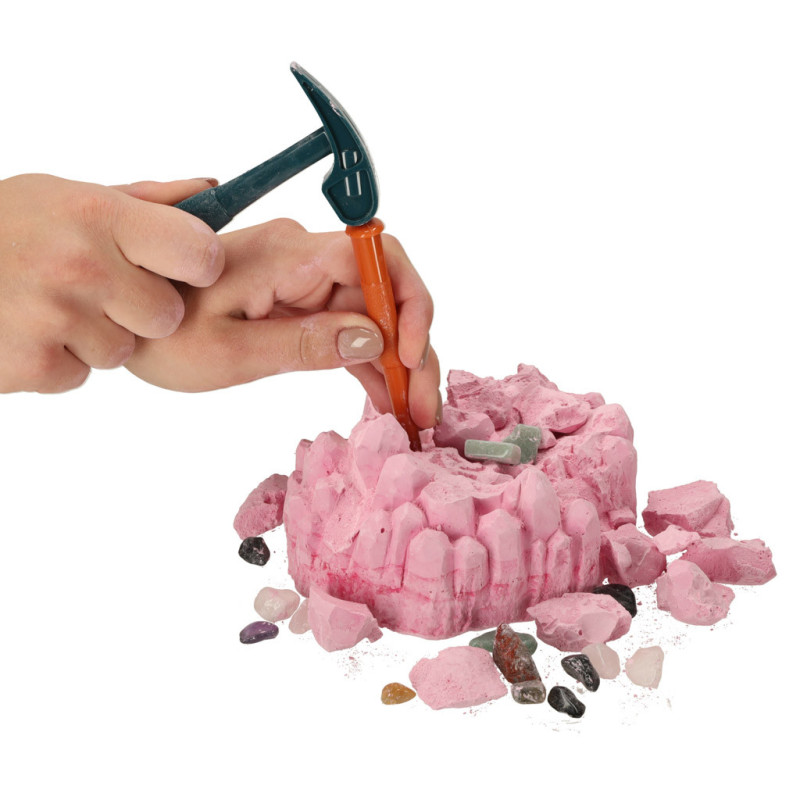 Staňte se malým archeologem a objevte skryté poklady! Tato vzdělávací sada umožní dětem pomocí kladívka a dláta odhalit až 18 různých minerálů ukrytých ve velkém sádrovém drahokamu.