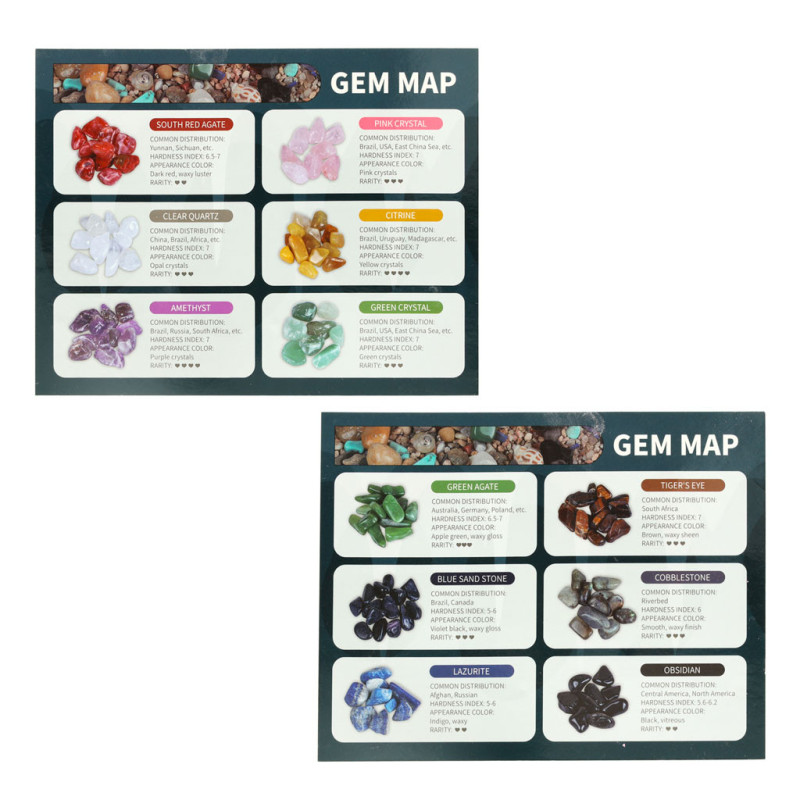 Objevené minerály si mohou děti vystavit ve speciální vitríně nebo z nich vytvořit originální náhrdelník. Součástí balení je také praktický plastový box na jejich uložení a lupa pro detailní pozorování. Anglický průvodce poskytuje zajímavé informace o každém minerálu.