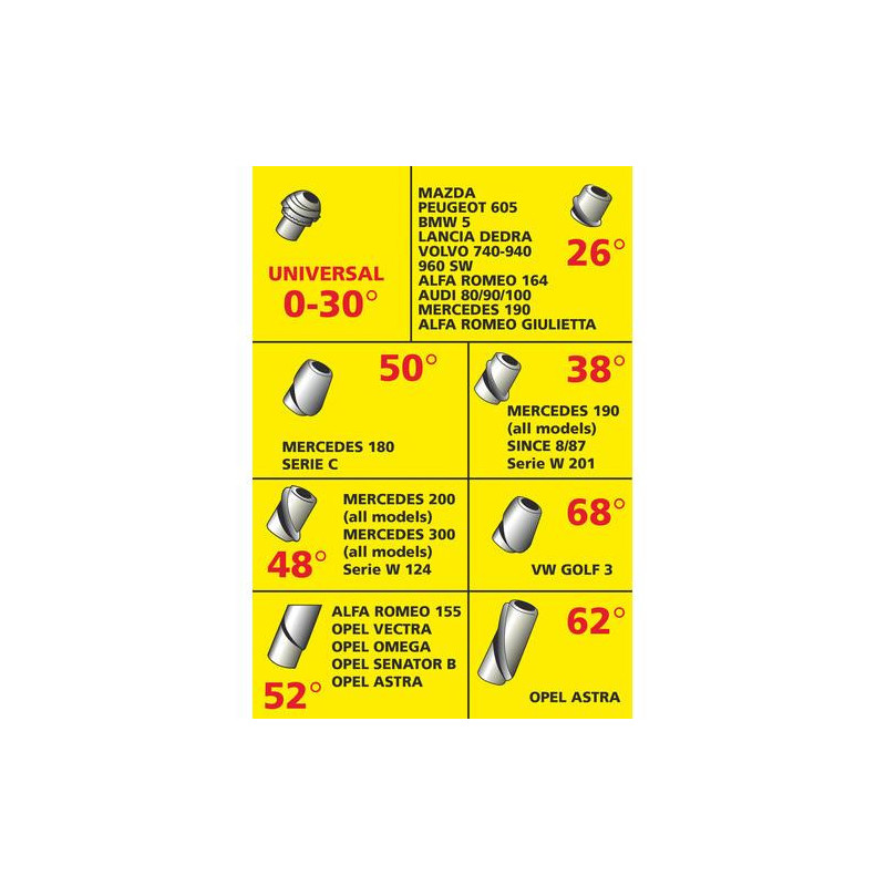 Úhel 0-30° / 26° / 38° / 48° / 50° / 52° / 62° / 68° Kapacita 80 pF ± 10%