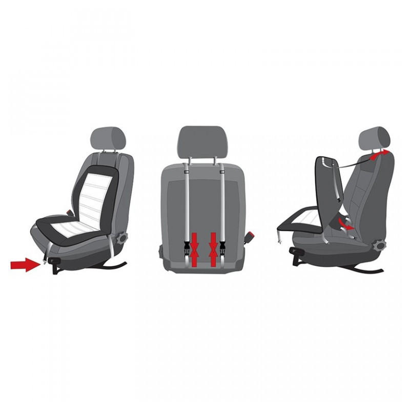 Materiál potahu sedáku do auta je 100% polyester. S pěnovou podšívkou, ruční praní při 30°C. Univerzální velikost. Barvostále 1ks v balení. 2 letá záruka. Vhodné pro všechny běžné osobní automobily bez nebo s bočním airbagem Rozměry: Sedadlo: 44cm x 46,5cm Opěradlo: 58cm x 45cm