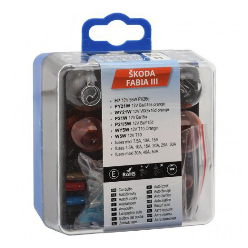 Využijte nabízenou pomoc prostřednictvím této plastové krabičky plné užitečných žárovek a pojistek pro vůz Škoda Fabia III . V případě rozbití či prasknutí žárovky můžete snadno tento problém opravit za pouhých několik minut. Jen několik okamžiků a trochu umu vás dělí od vrácení automobilu zpět na silnici. Náhradní díly můžete mít vždy po ruce díky této soupravě. Souprava obsahuje opravdu širokou paletu potřebného příslušenství . Plastový obal zajistí maximální bezpečí převážených komponentů. Díky tomu se nemusíte bát o zničení jemných drátků autožárovek.