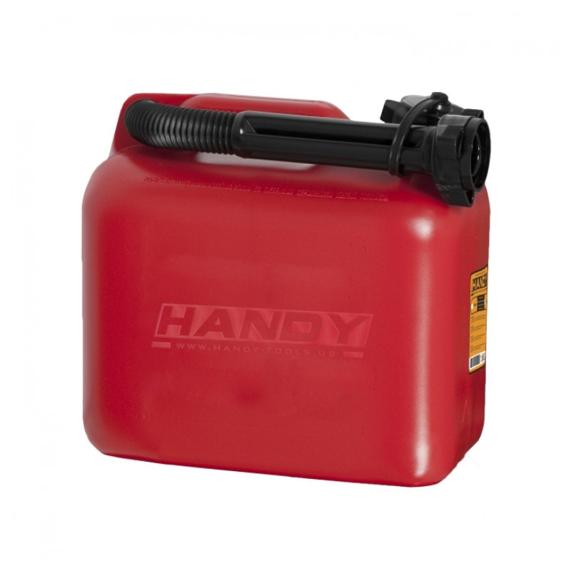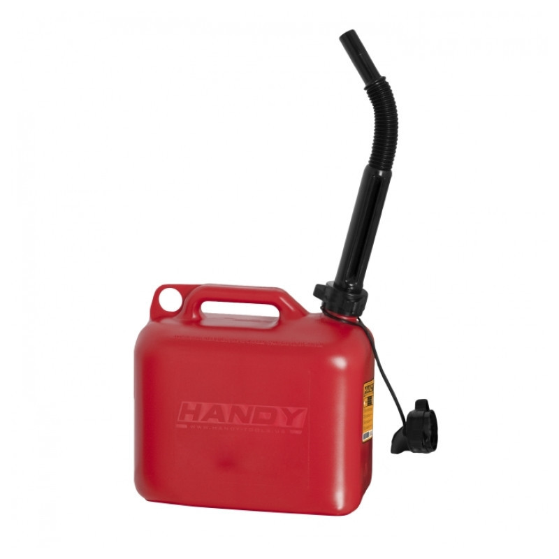 Vysoce kvalitní kanystr (UN 3H1/Y1.2/150) na pohonné hmoty, z odolného plastu, průhledná měrka s ryskami, uzávěr s těsněním ak tomu ještě přidáme pružný nalévací gágorec.