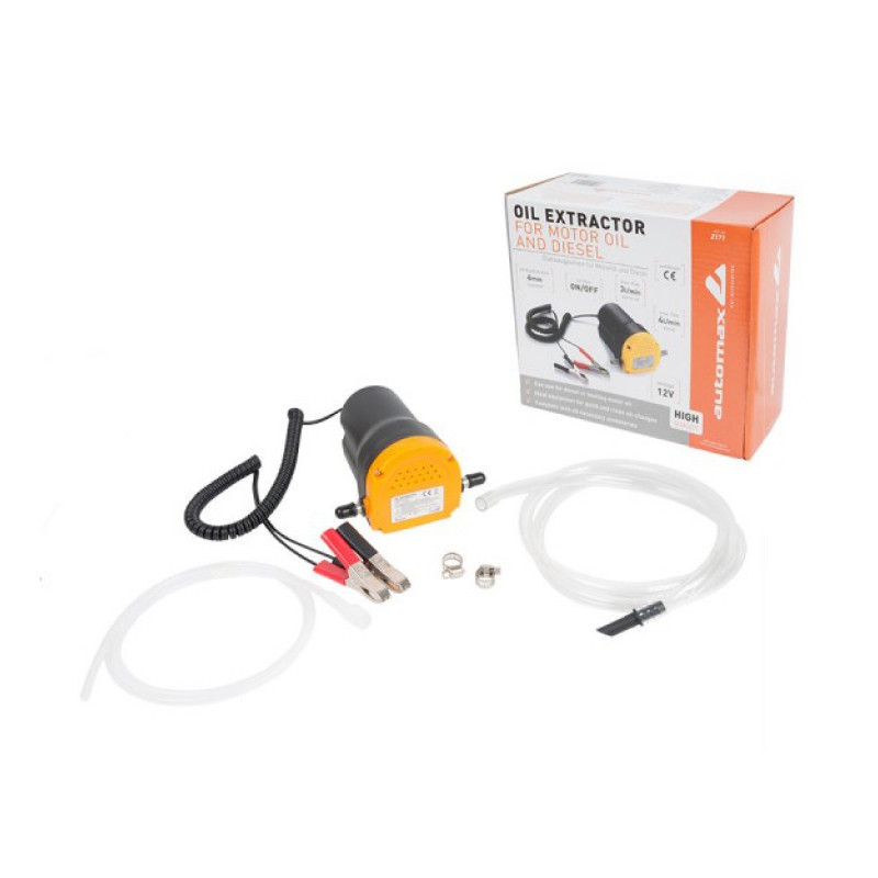 Díky efektivnímu 12V čerpadlu se výměna oleje, nafty nebo lehkých topných olejů stane mnohem rychlejší a čistší. Výměna motorového oleje, motorové nafty a topného oleje je mnohem jednodušší. Do měrky oleje je vložena sonda až do nejnižšího bodu olejové vany. Pomocí svorek lze napojit akumulátor baterie vozidla. On- a off- vypínač je umístěn přímo na čerpadle a zajišťuje snadný a pohodlný provoz čerpadla.