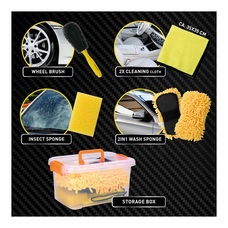 Všestranné využití: Sada je navržena tak, abyste mohli čistit různé povrchy vozidla, včetně karoserie, oken a kol. Je praktickým pomocníkem pro každého řidiče, který chce své auto udržovat v bezchybném stavu.
