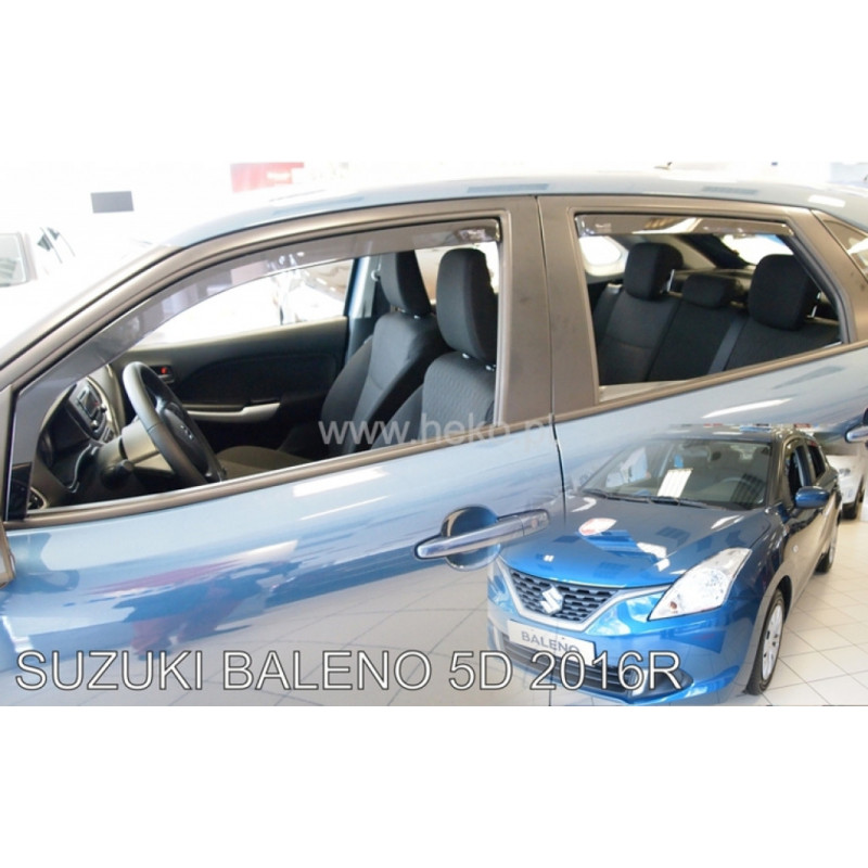 Deflektory pro SUZUKI Baleno 5D (+zadní) (2016->) na míru na okna automobilu. Deflektory jsou nazývány také ofuky oken nebo protiprůvanové clony.