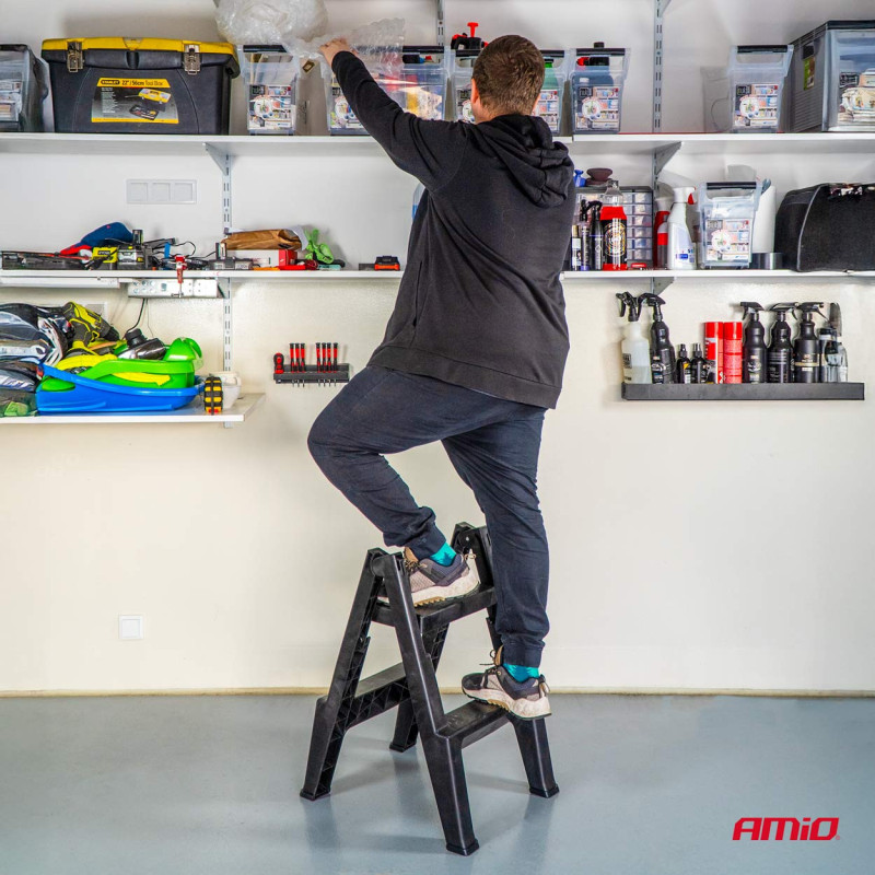 Dílenský schůdek – stolička 51,5 cm 150 kg AMiO-04267 je praktický a stabilní pomocník do dílny, garáže nebo domácnosti. Je vhodný pro dosažení vyšších poloh při práci i jako stolička při přestávkách.