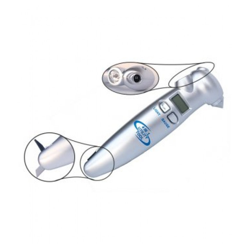 Pneuměřič 4v1 s digitálním displejem. digitální pneuměřič ořezávadlo světlo kladívko