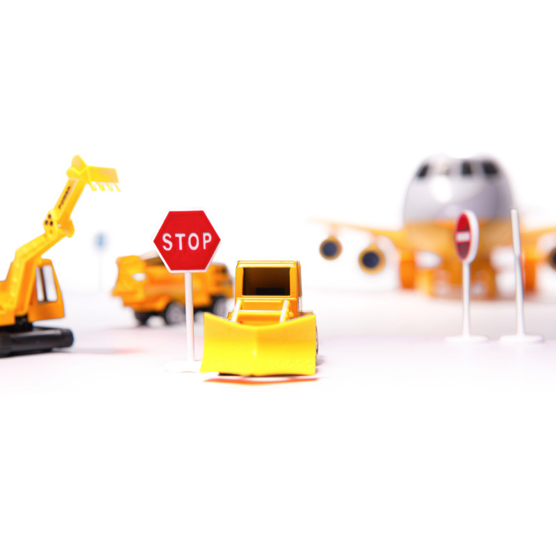 Postavme nový dům nebo celé sídliště – potřebné stroje přiletí letecky! Velké letadlo, které přepravuje stavební techniku, se stane dokonalým parťákem každého malého stavitele.