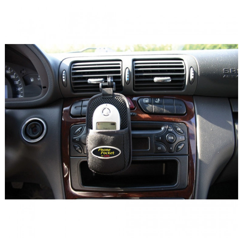 Držák lze aplikovat na bezpečnostní pás nebo s přiloženým držákem na ventilační mřížku.