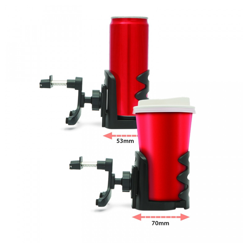 Nastavitelný průměr držáku podle velikosti sklenice/lahve/plechovky.