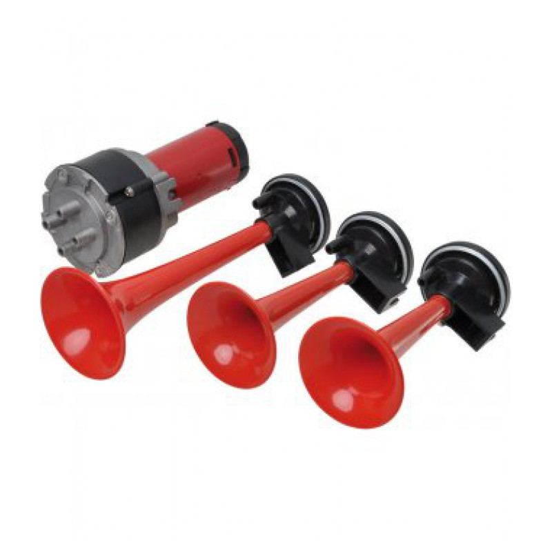 3-trubková fanfára poháněná vzduchovým kompresorem dodávaným v sadě.