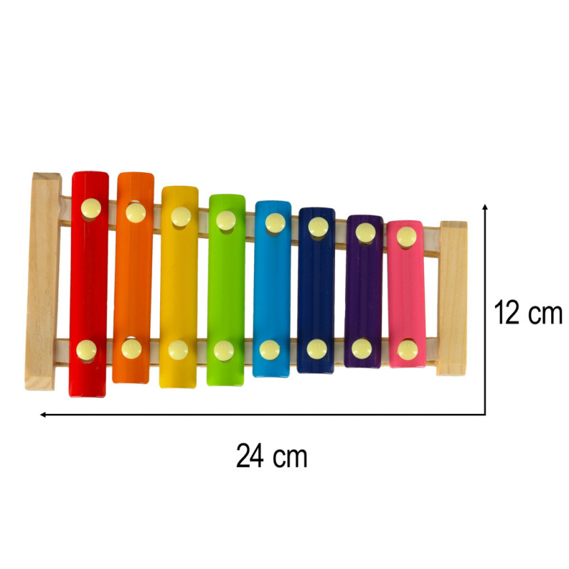 Dřevěný cimbál pro děti je ideálním hudebním nástrojem pro první seznámení s rytmem, melodií a barvami. Je vyroben z kvalitního dřeva a kovových destiček v osmi různých barvách, které vydávají odlišné tóny. Skvělý způsob, jak rozvíjet hudební talent již od útlého věku.