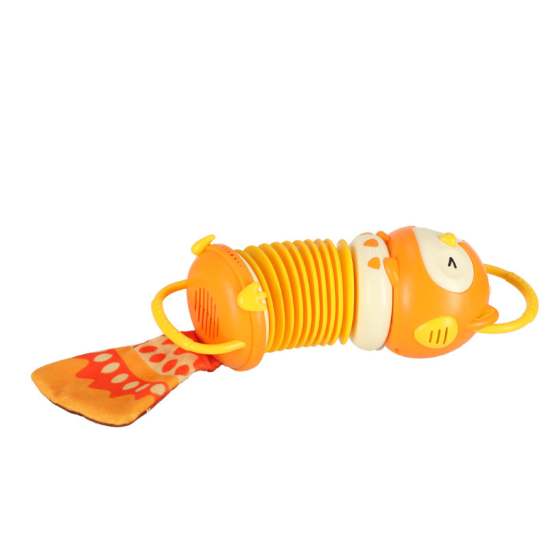 Zajímavý design a šustící ocásek podpoří hru, která zlepší přesnost rukou batolete a rozvíjí jeho sluch i jemnou motoriku.