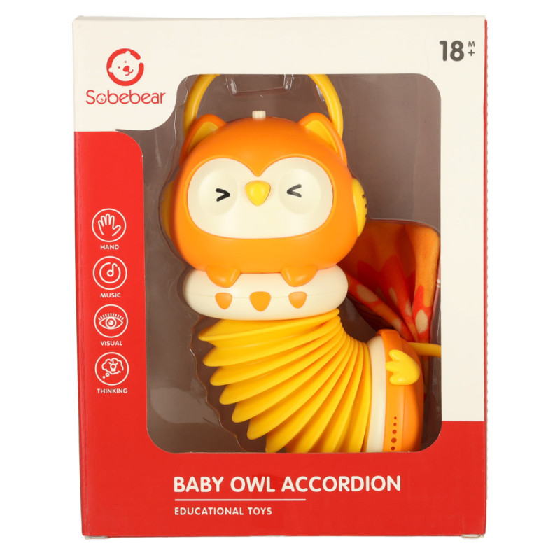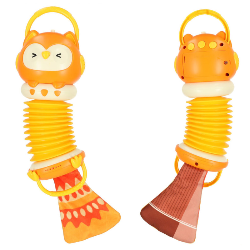 AKORDEON HARMONIE PRO DĚTI ORANŽOVÁ SOVA HRAJÍCÍ POD VEDENÍM 30 CM