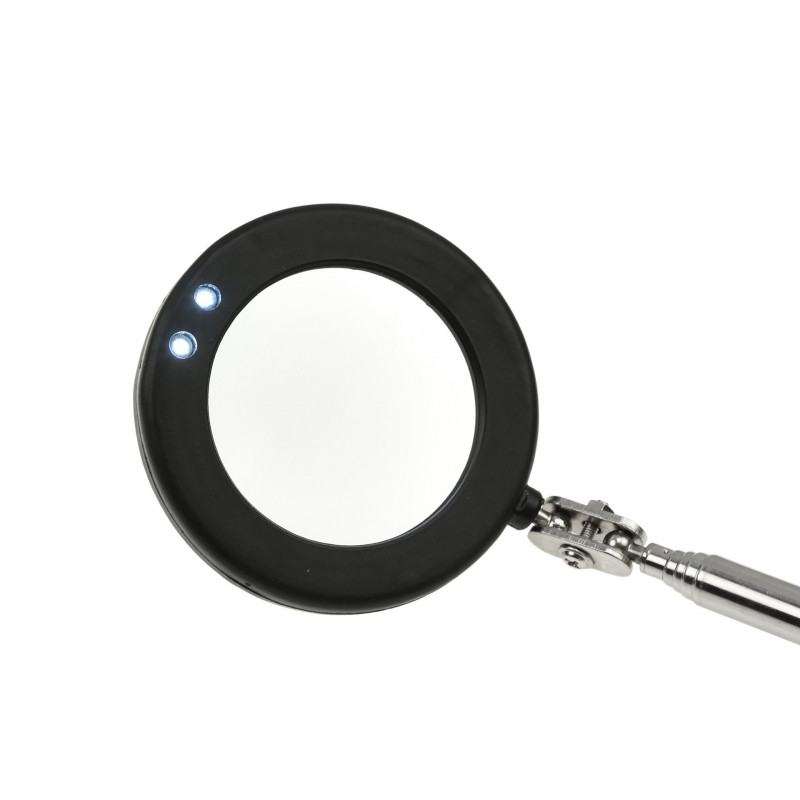 Inspekční zrcadlo na teleskopickém rameni, vybavené dvěma LED diodami. Výrobek je nenahraditelný v každé autodílně. Umožňuje prohlížení nepřístupných, skrytých prvků konstrukce aut, strojů a pod. Zrcadlo má 360° polohové nastavení