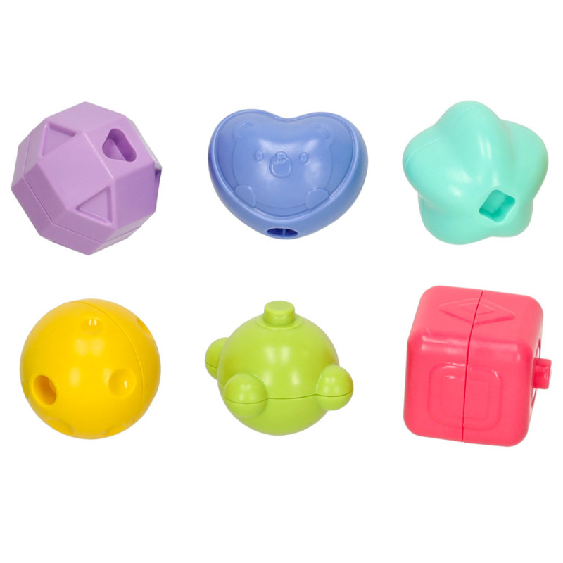 Jedna ze stěn je odnímatelná, což usnadňuje přístup k obsahu kostky. Jasné barvy a rozmanité textury poutají pozornost dítěte a podporují jeho aktivitu.