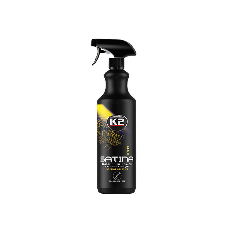 K2 SATINA PRO – saténová péče o interiér vozidla K2 SATINA PRO představuje jemné spojení dvou světů – tam, kde končí lesk a ještě nezačíná mat, objevuje se satén s elegantním, decentním a ušlechtilým finišem. Tento interiérový ošetřující přípravek je určen pro plasty, vinyl a gumu uvnitř vozidla. Obnovuje původní vzhled povrchů, jemně je ztmavuje a zvýrazňuje barvu bez mastného filmu nebo přehnaného lesku. Skvěle podtrhuje strukturu materiálu a zvýrazňuje přirozenou krásu interiéru.