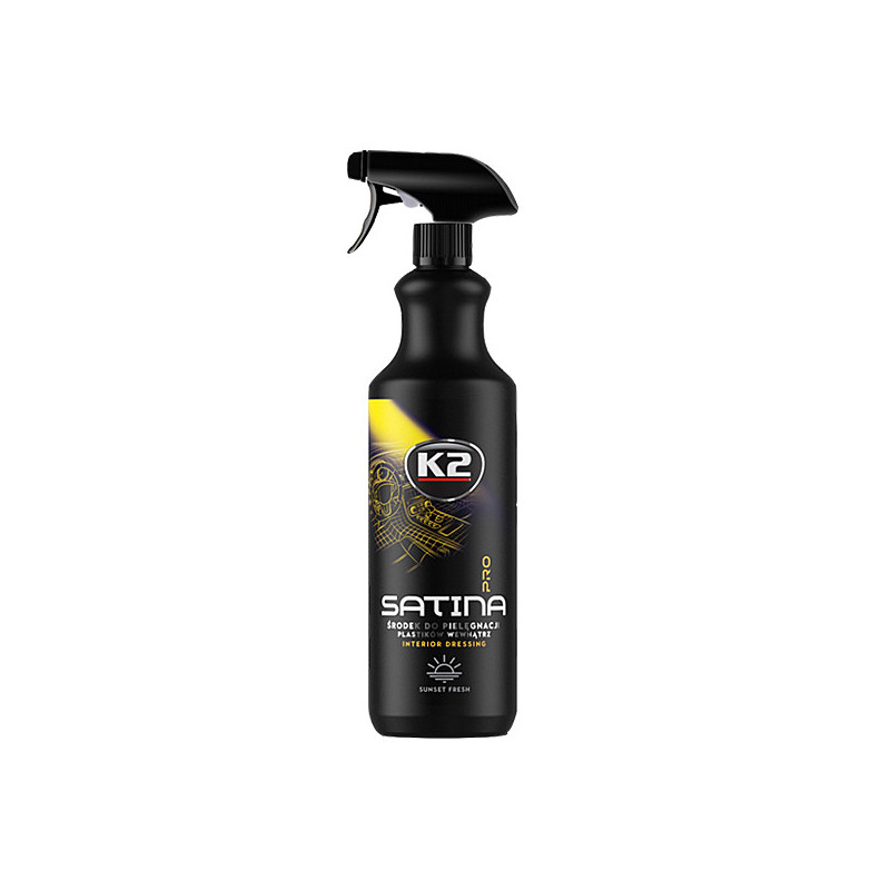 K2 SATINA PRO – saténová péče o interiér vozidla K2 SATINA PRO představuje jemné spojení dvou světů – tam, kde končí lesk a ještě nezačíná mat, objevuje se satén s elegantním, decentním a ušlechtilým finišem. Tento interiérový ošetřující přípravek je určen pro plasty, vinyl a gumu uvnitř vozidla. Obnovuje původní vzhled povrchů, jemně je ztmavuje a zvýrazňuje barvu bez mastného filmu nebo přehnaného lesku. Skvěle podtrhuje strukturu materiálu a zvýrazňuje přirozenou krásu interiéru.