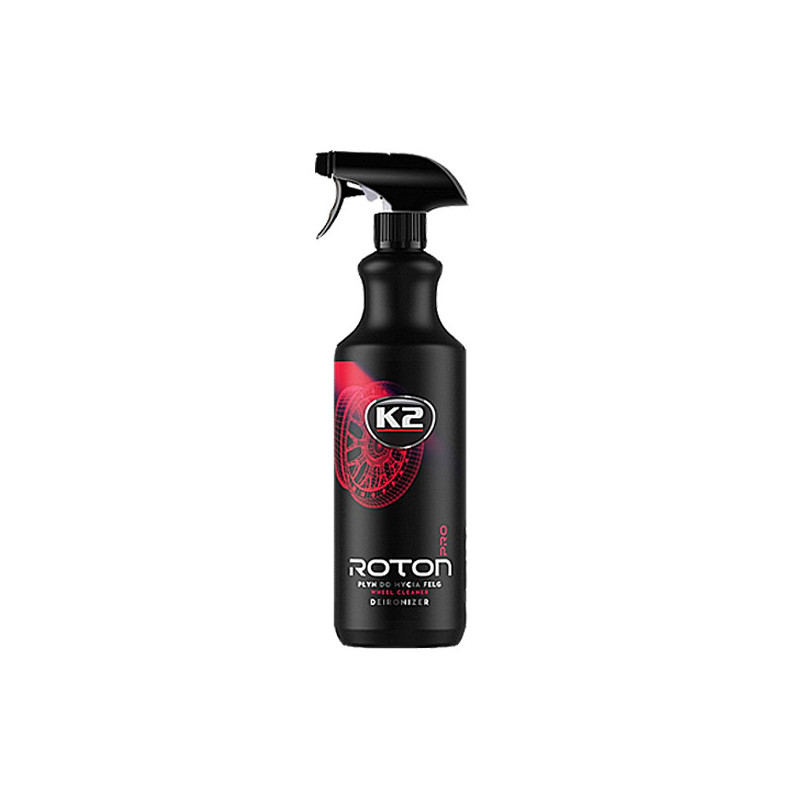 K2 ROTON PRO Detailing – gelový čistič disků s krvavým efektem K2 ROTON PRO je výkonný gelový čistič disků navržený pro odstranění i těch nejodolnějších nečistot, včetně brzdového prachu a usazenin z cest. Díky gelové konzistenci přilne k povrchu a působí déle, což zajišťuje důkladné a rovnoměrné čištění. Po aplikaci produkt reaguje s nečistotami červeným zabarvením (tzv. "krvavý efekt"), což je známkou úspěšného rozpouštění špíny. Má neutrální pH a speciální přísady, které minimalizují nepříjemný zápach typický pro tento typ čističů. Bezpečný pro všechny typy disků – čistí efektivně, bez rizika poškrábání povrchu.