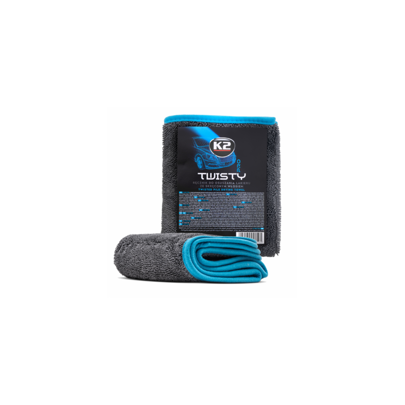 K2 TWISTY PRO – univerzální mikrovlákno na sušení a leštění auta K2 TWISTY PRO je praktická a efektivní utěrka z mikrovlákna určená pro rychlé sušení a precizní leštění vozidla. Její oboustranné provedení umožňuje všestranné použití – zkroucená vlákna na jedné straně slouží k efektivnímu vysušení karoserie, zatímco hladká strana je ideální pro leštění skel a oken bez šmouh. Mikrovlákno K2 TWISTY PRO o rozměru 40×60 cm a s hustotou 600 g/m² potěší každého, kdo si zakládá na dokonale čistém autě. Díky špičkové kvalitě materiálu a moderní technologii "Twisted Pile" skvěle absorbuje vodu, jemně klouže po povrchu a minimalizuje riziko poškrábání laku. Výhody K2 TWISTY PRO oceníte především při sušení po návštěvě bezdotykových automyček – rychle a bez námahy odstraníte zbytky vody, čímž předejdete vzniku vápenných skvrn. Pokud potřebujete utřít větší plochy, doporučujeme větší ručník K2 TWISTON PRO o rozměru 60×90 cm.
