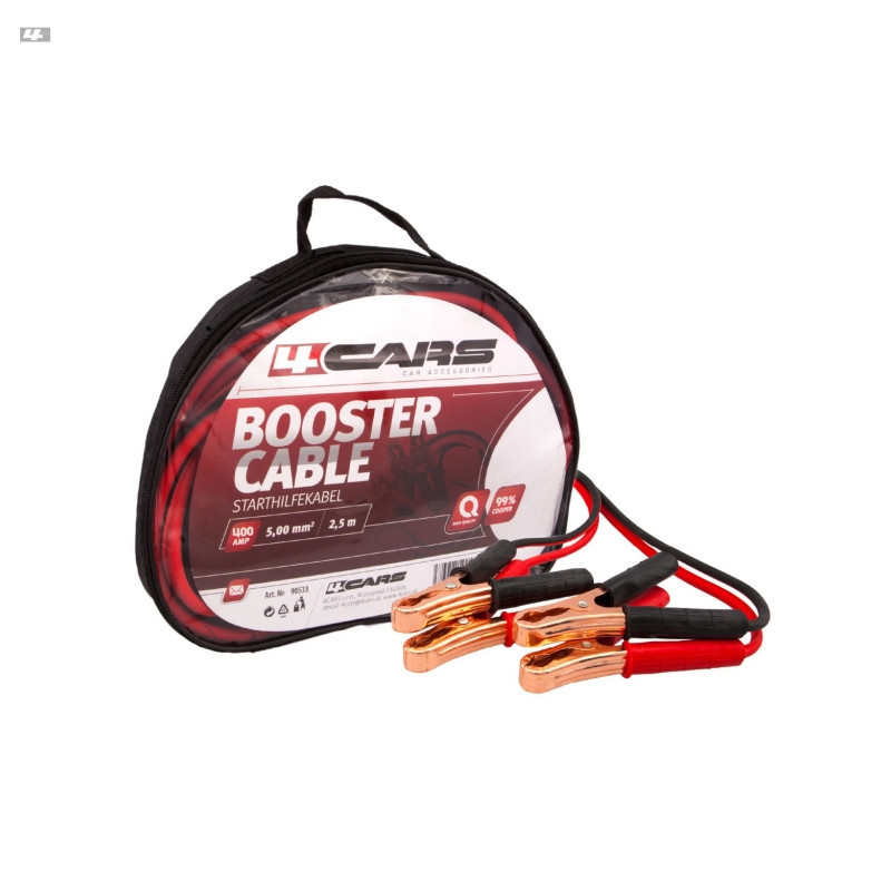 Max. proud 400 ampér, délka 2,5 metru. 99% měď, 5.0mm². V uzavíratelném obalu. Neobsahuje žádné přísady jiných kovů, které snižují účinnost startovacích kabelů.
