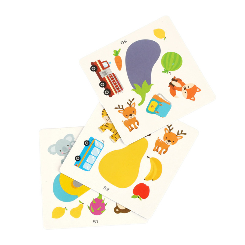 Varianta pro 2 hráče: Karty se rovnoměrně rozdají a každý hráč postupně otáčí jednu kartu lícem nahoru. Ten, kdo jako první najde stejný symbol na obou kartách, získává bod. Hra končí, až dojdou karty – vítězí hráč s největším počtem karet.