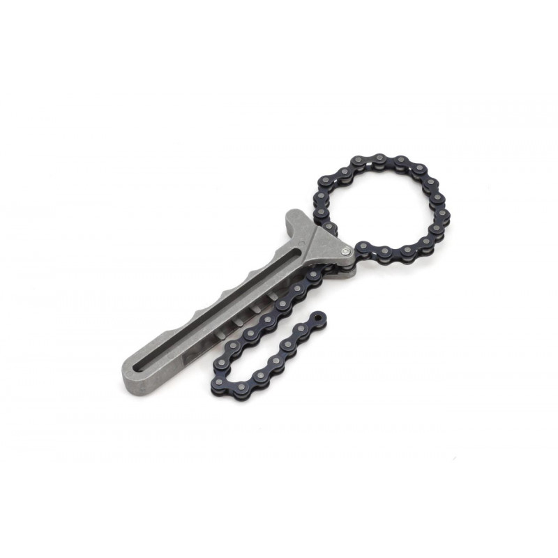 Klíč olejového filtru s řetězem, vhodný pro různé velikosti olejových filtrů. Neklouzavý ocelový řetěz.