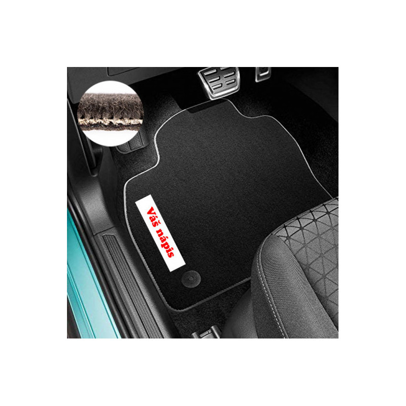 Hustota vlasu gramáž: 2100g/m2 a výška vlasu 4,9mm. Dvojité zpevnění nášlapu řidičova koberce. Spodní strana zpevněná gumovým povrchem.