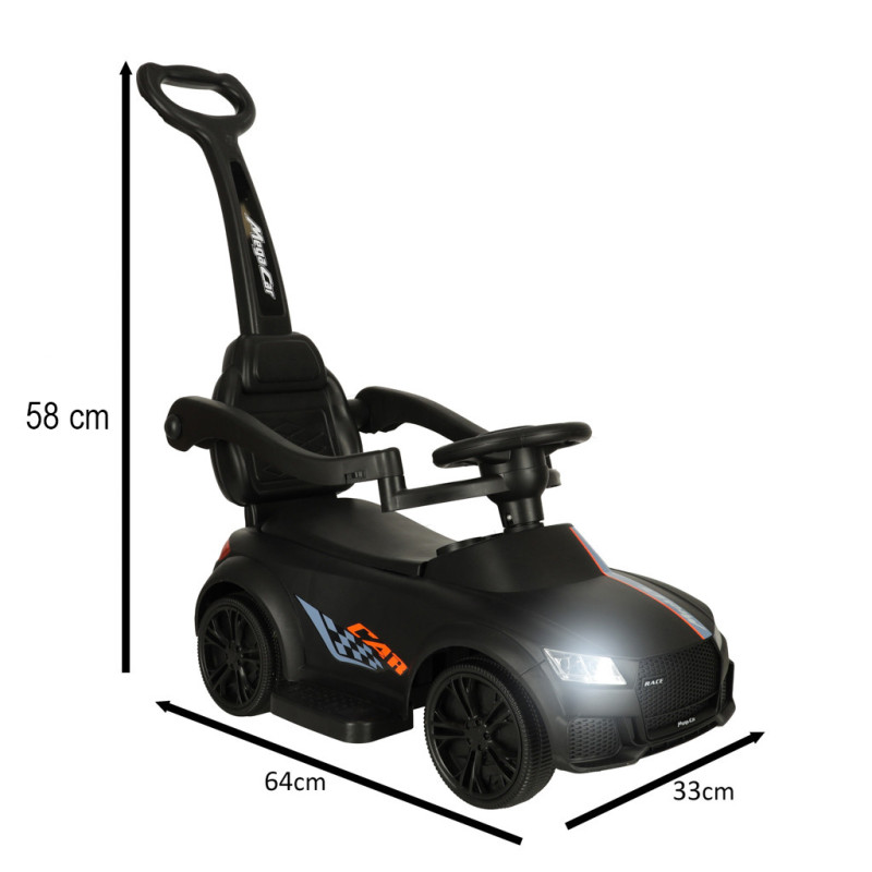 Dětské autíčko se zvukovými a světelnými efekty přinese každému malému řidiči spoustu radosti a zábavy! Vhodné pro hru doma i venku a díky praktické rukojeti ho lze jednoduše tlačit, pokud se malý závodník unaví.