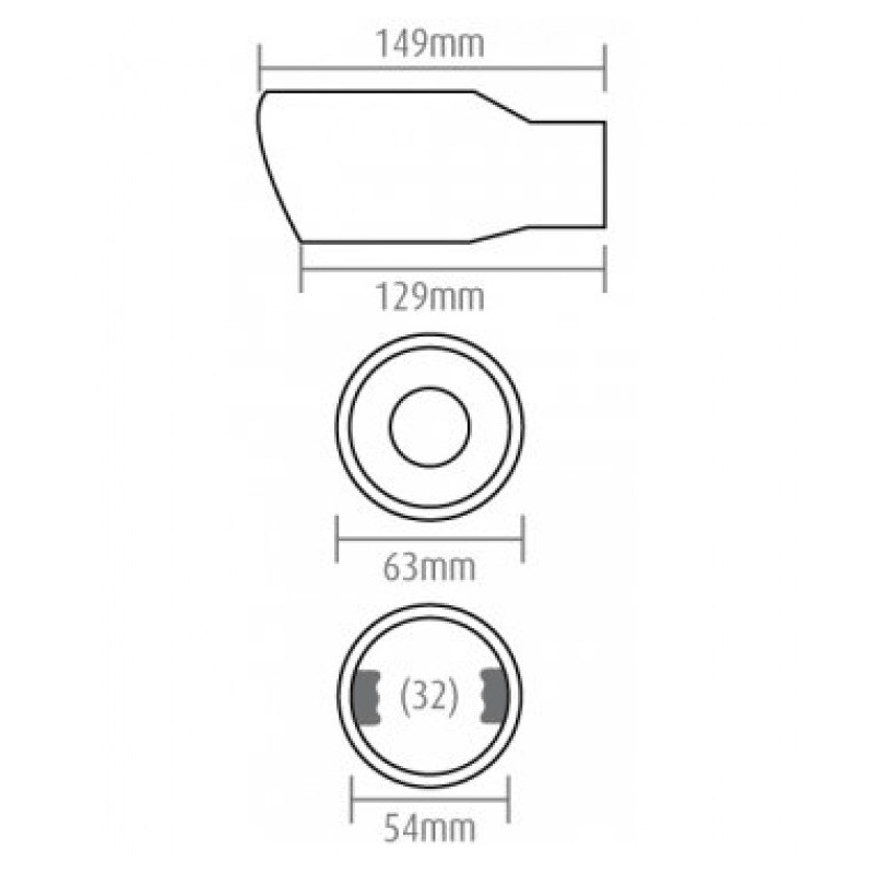 Vhodné na výfuk o průměru: od 32 do 48mm. (průměr koncovky 54mm, úchyty po stranách zabírají cca 6 mm)