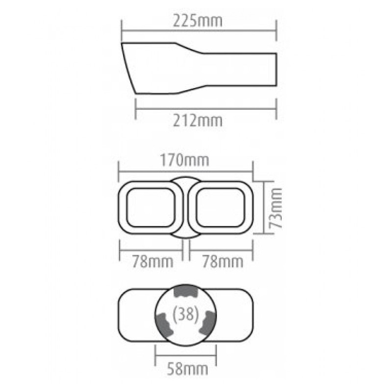 Vhodné na výfuk o průměru : od 38 do 52mm. (průměr koncovky 58mm, úchyty po stranách zabírají cca 6 mm)