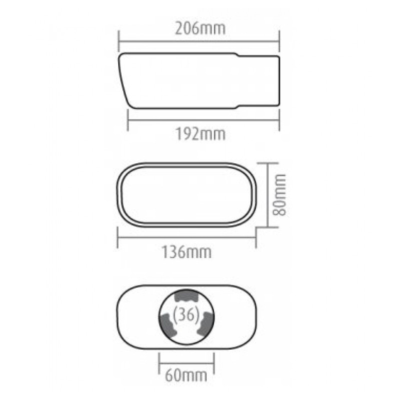 Vhodné na výfuk o průměru: od 36 do 54mm. (průměr koncovky 60mm, úchyty po stranách zabírají cca 6 mm)