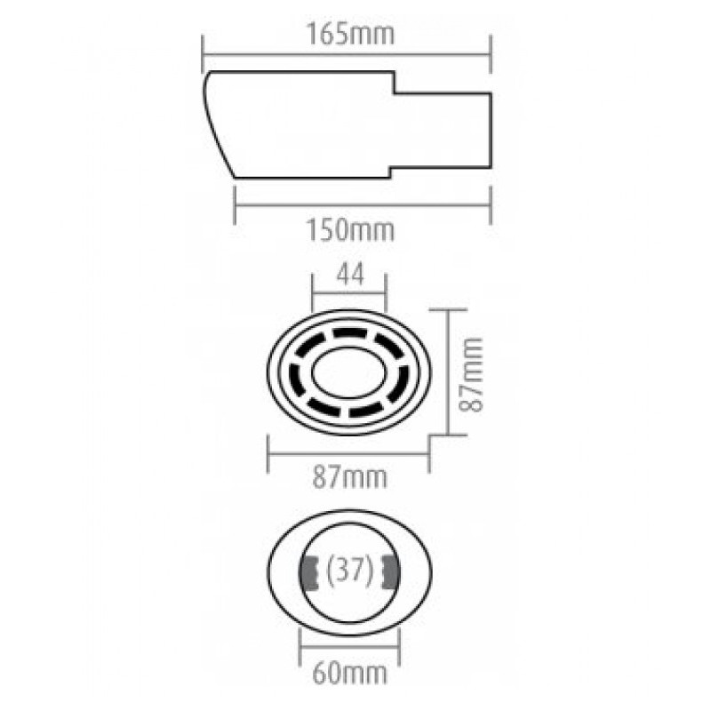 Vhodné na výfuk o průměru: od 37 do 54mm. (průměr koncovky 60mm, úchyty po stranách zabírají cca 6 mm)