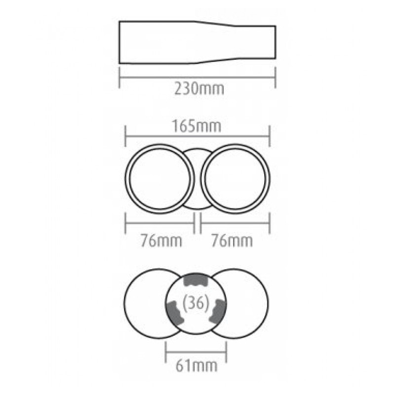 Vhodné na výfuk o průměru : od 36 do 55mm. (průměr koncovky 61mm, úchyty po stranách zabírají cca 6 mm)