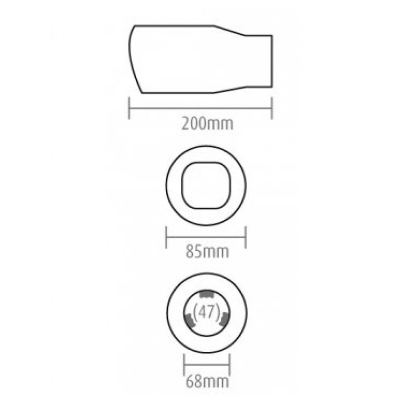 Vhodné na výfuk o průměru: od 47 do 62mm. (průměr koncovky 68mm, úchyty po stranách zabírají cca 6 mm)