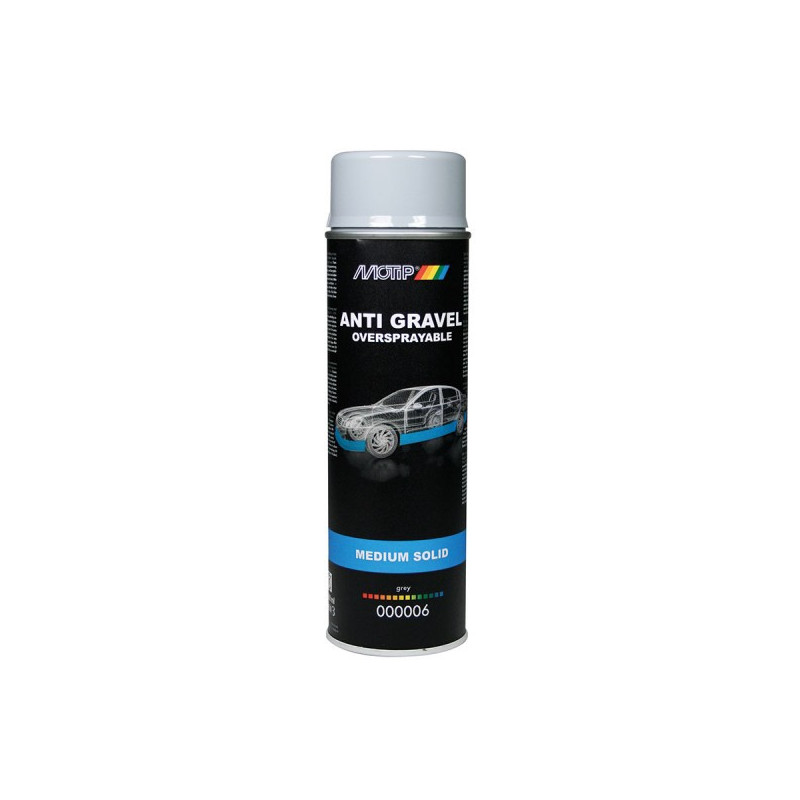Konzervační přípravek proti otlakům určený k ošetření spodní části a viditelných částí motorových vozidel. Sprej proti odštěpkům kamene lze přestříkat všemi lakovacími systémy a má vynikající prevenci proti korozi. Sprej na kamennou drť je odolný vůči povětrnostním vlivům a slabým kyselinám a zásadám, je zvukově absorpční a zůstává pružný. MoTip Stone Chip Spray je k dispozici ve třech barvách, černé, šedé a bílé, v 500ml aerosolové nádobce a 1000ml nádobce pro aplikaci pomocí stříkací pistole UBC.