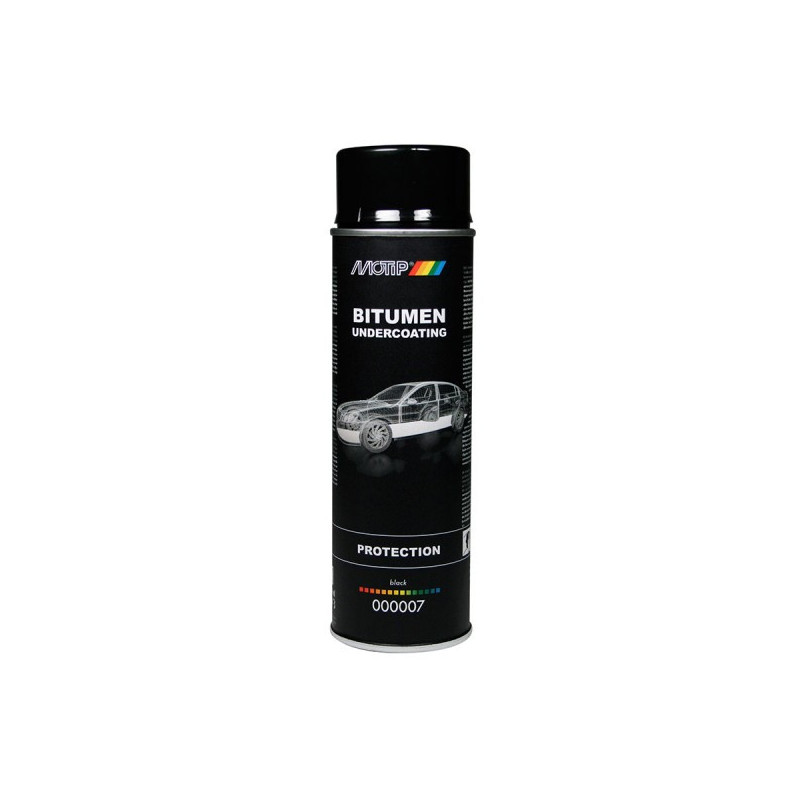Konzervační přípravek pro ošetření spodní části vozidel. Základní nátěr na bázi bitumenu je odolný vůči povětrnostním vlivům a slabým kyselinám a má vynikající ochranu proti korozi. Podkladový nátěr na bázi bitumenu zůstává pružný a pohlcuje zvuk. Bitumenový podkladový nátěr MoTip je k dispozici v 500 ml aerosolové nádobce, 1 000 ml nádobce pro aplikaci pomocí stříkací pistole UBC a v 1 300 a 2 500 gramových štětcích.