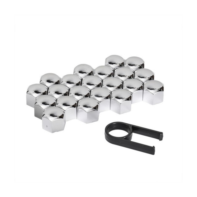 Sada 21ks okrasných krytů na šrouby. Vhodné pro šrouby o průměru 17mm. Chromový design. Efektní doplněk na kola automobilu.