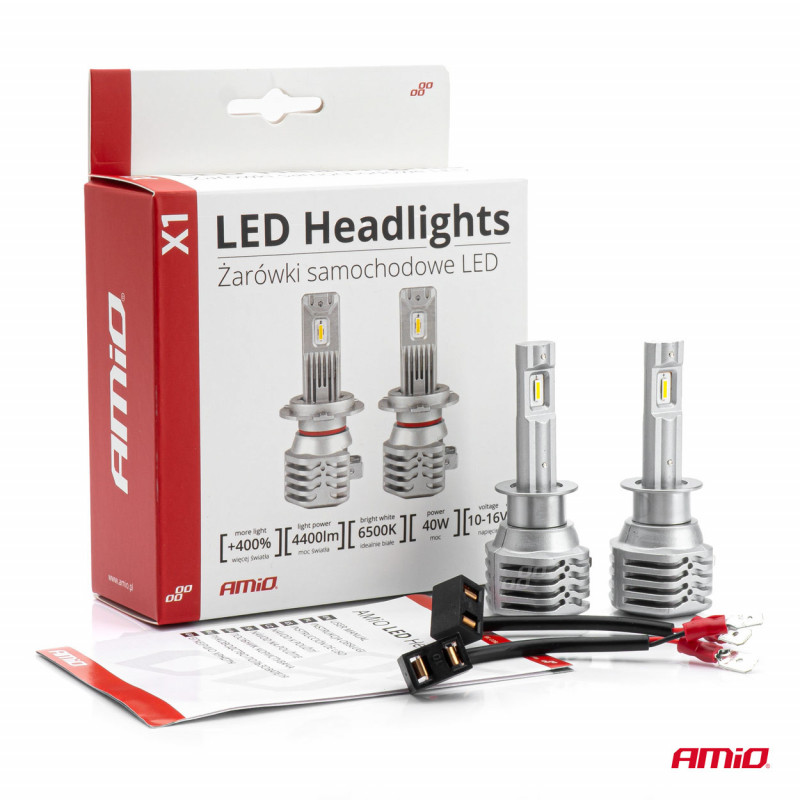 LED žárovky H1 AMiO série X1 se vyznačují velmi vysokou kvalitou. Navrhovaná sestava vyzařuje jasnější a koncentrovanější světlo, což umožňuje lepší viditelnost vozovky v omezených světelných podmínkách, jako je soumrak, mlha nebo déšť. Světelné zdroje vyrobené technologií CSP jsou efektivnější v procesu přeměny elektřiny na viditelné světlo v porovnání s tradičními halogenovými žárovkami. LED žárovky jsou odolnější vůči nárazům a vibracím, což znamená, že mají delší životnost než halogenové žárovky.
