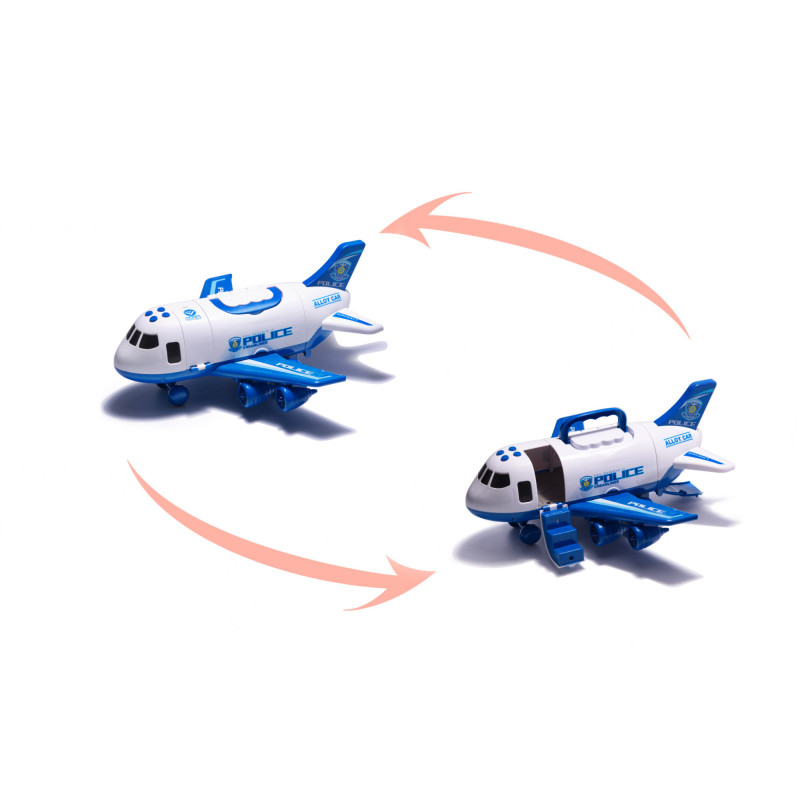 Letadlo má výklopnou rampu na zádi pro vjezd vozidel, boční otevírání pro snadný přístup a schody pro samotné policisty. Skvělá hračka, která děti hravou formou seznamuje se zásadami bezpečnosti, respektem k zákonům i čísly tísňového volání.