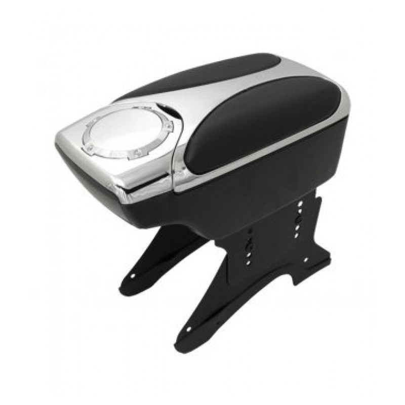 Univerzální chromová loketní opěrka určená k montáži mezi přední sedadla osobního automobilu. S úložným prostorem uvnitř opěrky a držákem nápojů. Podstavec je nastavitelný do šířky i výšky. Balení obsahuje také šrouby pro upevnění. Maximální šířka středového panelu, na který je opěrka vhodná cca 13,5cm.