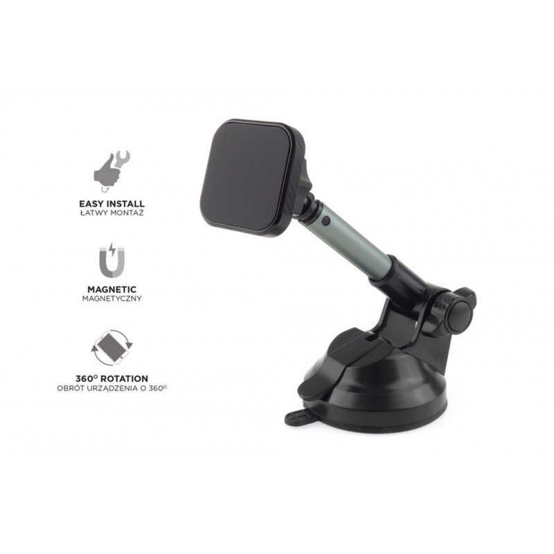 Upevnění položením telefonu na magnetickou plochu. Na mobilní telefon se upevní kovová plotýnka, při přiblížení telefonu s touto plotýnkou (k držáku), je telefon velkou silou přitažen na dotykovou plochu držáku.