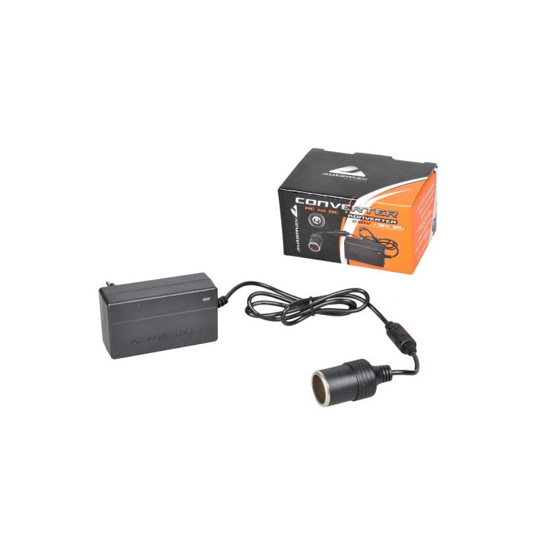 Měnič střídavého proudu na stejnosměrný. Převádí vstupní napětí 230 V na výstupní napětí 12 V DC. S adaptérem můžete používat 12V zařízení, jako jsou kompresory, vysavače, chladiče a další.