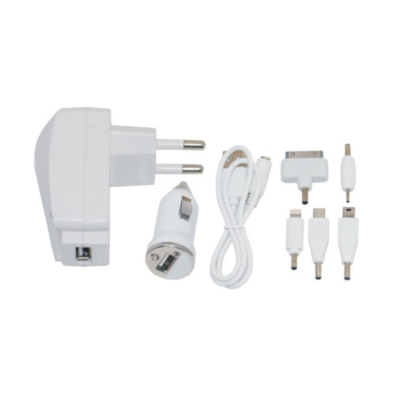 Nabíječka umožňující z klasické 12V či 24V zásuvky autozapalovače nebo ze zásuvky 230V napájet či nabíjet mobilní telefony, MP3 přehrávače a další zařízení schopná dobíjení či napájení pomocí některého z přiložených adaptérů či pomocí klasického USB kabelu.