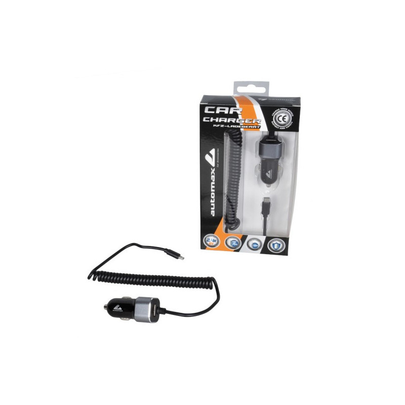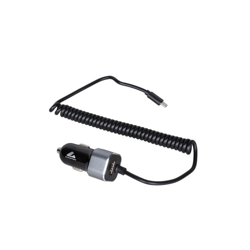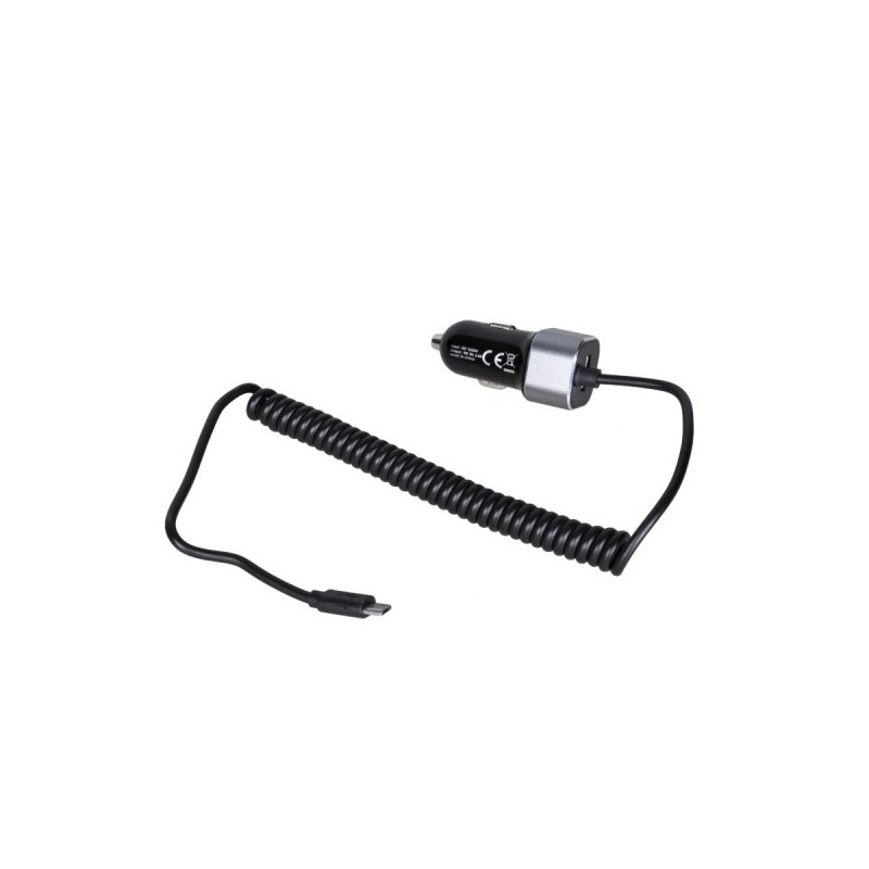 Univerzální nabíječka do auta pro osobní a nákladní automobily s konektorem Micro USB na spirálovém kabelu + velký konektor USB.