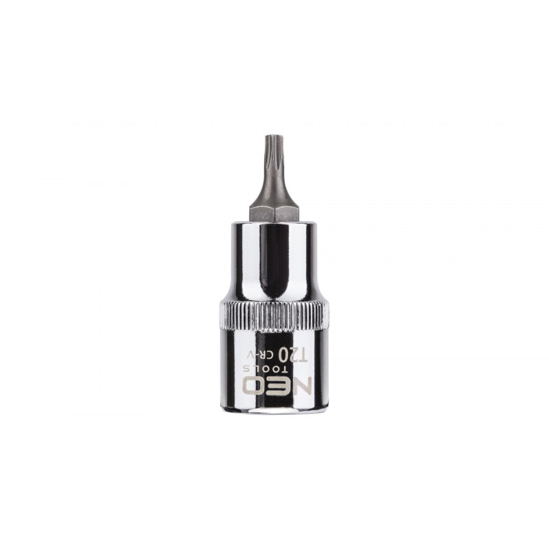 NEO Špičatý hrot Torx na nástavci 1/2 ' s délkou 55 mm. Nástavec je vyroben z odolné chrom-vanadiové oceli. Šestihranný hrot je vyroben z vysoce kvalitní legované oceli S2. Kvalita je potvrzena TÜV certifikátem a 25letou zárukou výrobce. Značka NEO splňuje očekávání profesionálů.