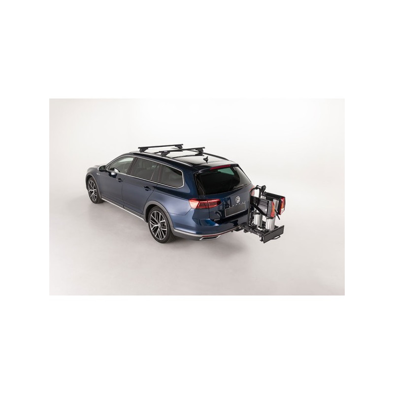 Kompaktní a lehký nosič Antares je nový skládací nosič kol s rychloupínacím tažným systémem, který je vyroben z robustního ocelového rámu a velkých hliníkových kolejnic. Ideální pro elektrokola a tlustá kola. Nosič Antares je vybaven systémem sklápění ovládaným pedály a dvojitým zařízením proti krádeži nosiče kol a jízdních kol.