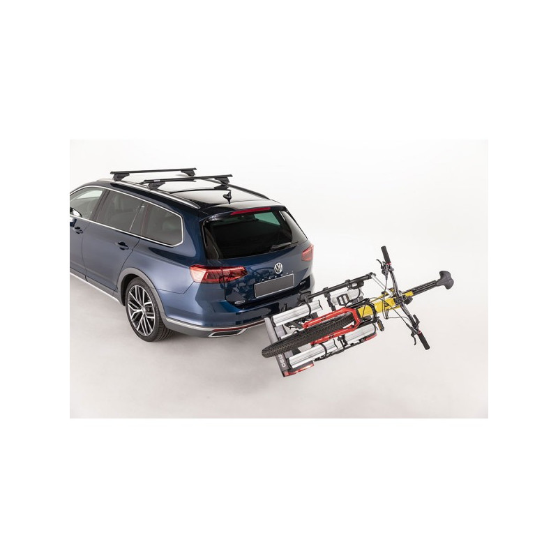 Kompaktní a lehký nosič Antares je nový skládací nosič kol s rychloupínacím tažným systémem, který je vyroben z robustního ocelového rámu a velkých hliníkových kolejnic. Ideální pro elektrokola a tlustá kola. Nosič Antares je vybaven systémem sklápění ovládaným pedály a dvojitým zařízením proti krádeži nosiče kol a jízdních kol.
