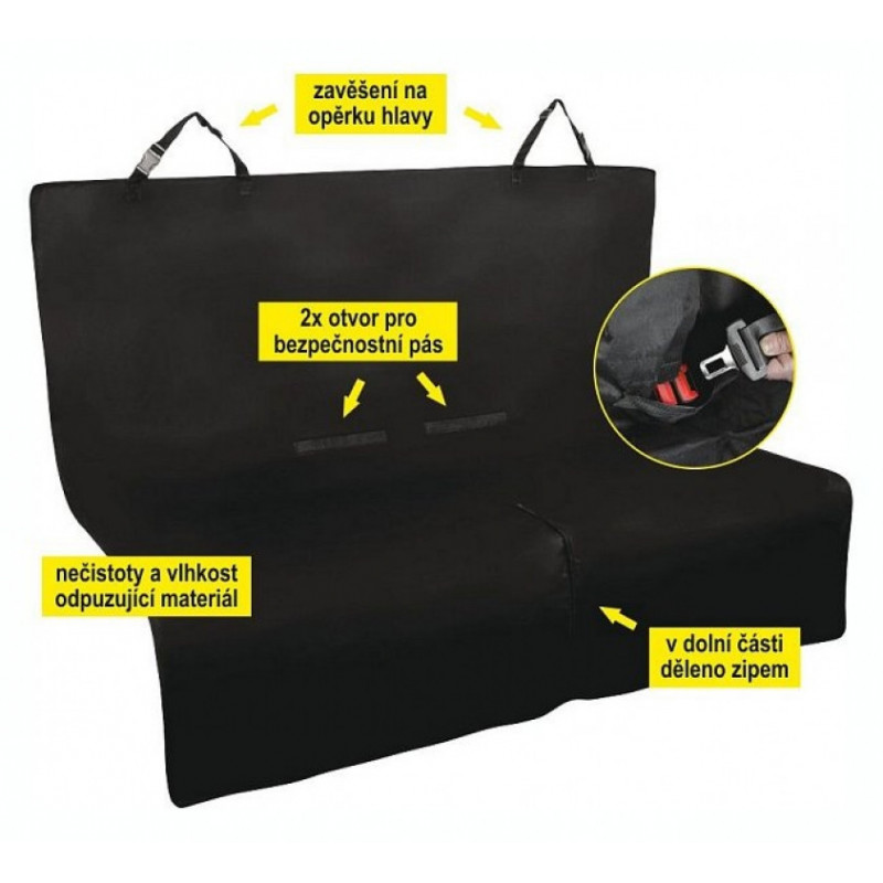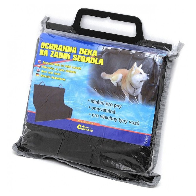 Ochranná deka ze zesíleného materiálu, zabraňuje znečištění vozidla při přepravě psů. Deka je určena k upevnění na zadní sedadlo pouhým zavěšením za opěrky hlavy. Dva uzavíratelné otvory na bezpečnostní pásy, dolní část dělená zipem pro snadné přizpůsobení deky různým vozům. Deka je omyvatelná , použitý materiál odpuzuje nečistoty i vlhkost.